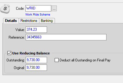 Transaction code to use in Platinum is WRID - it is a deduction code.